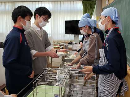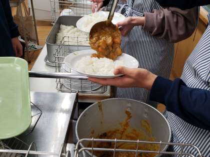 給食メインのメニューは「ほうれん草入りカレーライス」。人気のカレーライスに栄養豊富なほうれん草が入っており、野菜もしっかりと摂れますね。明日からの期末考査に備えて、まずは十份な栄養と睡眠ですね。