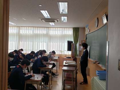 期末考査最終日、美術の試験が始まりました(1・2年生は学活)。考査初日はゴールの遠さに気持ちが沈みがちになった生徒もいたようです。「千里の道も一歩から」気がつけばゴールが少し見えてきましたね。