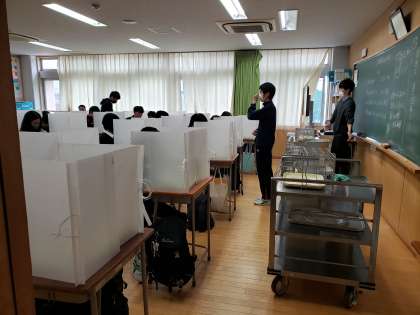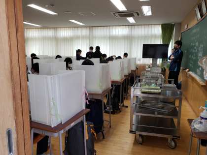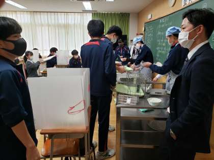 給食の時間も開放的な気分で迎えられますね。思いっきりクラスメートとお喋りをしたいところですが、黙食にご協力ください。