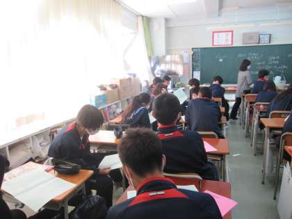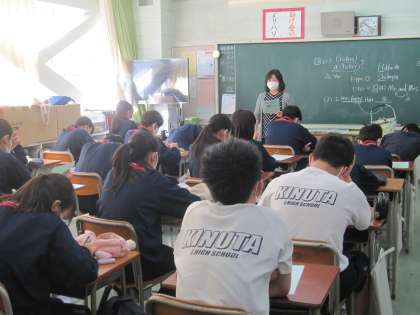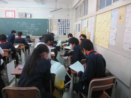 早速、例文を活用しながら会話に挑戦しています。「これを使ってかっこよく返してね。」と前向きな言葉が聞こえてきました。(副校長)
