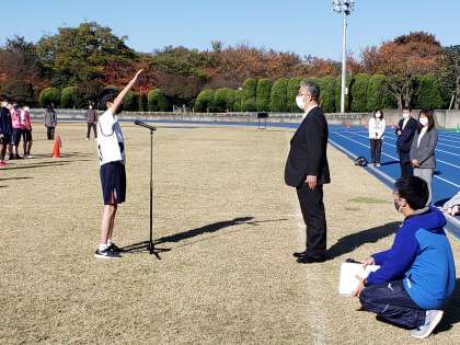 7校を代表して、選手宣誓は砧中生が務めました。準備体操の後、9時50分より1.5Kmからスタートです。