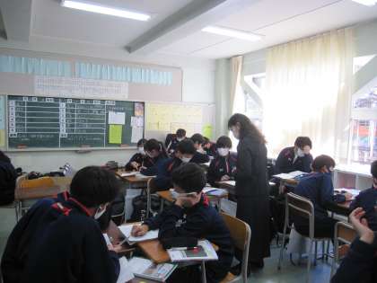 2年生国語では、「短歌を味わう」という単元のまとめとして、3人一組でひとつの短歌について研究しています。