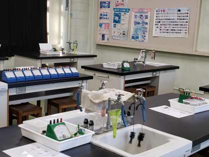 理科室ではこれから始まる物理の実験準備がほぼ完了していました。生徒たちもお手伝いしてくれたそうです。お手伝いを通じてもいろいろな事が学べると思いますよ。