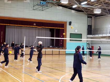 今朝の朝練習はバレーボール部です。寒さに負けず、元気な掛け声が体育館に響いていました。
