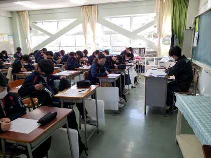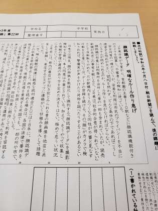 2年生は毎週火曜日の朝、社説学習に取り組んでいます。社説を読み、要約をしたり、自分としての考えを論述する活動です。