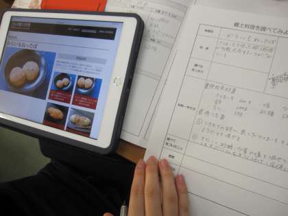 郷土料理にはなじみのない料理名もたくさんあります。生徒に選んだきっかけを聞いてみるとおばあちゃんがいる青森の料理だからと教えてくれた生徒もいます。自分の好きな食材を使った料理を調べている生徒もいました。