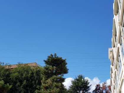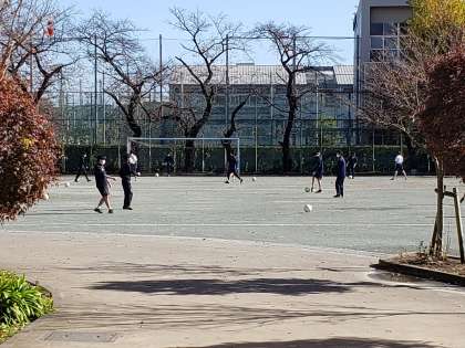 朝の大雨が嘘のように、昼前には抜けるようなな青空となりました。砧中学校は高台にあるため、校庭の水はけに恵まれた立地です。この時間はほぼ水溜まりも無くなり、3年生の体育ではサッカーに取り組む事ができました。3年生は体を動かす機会が少なくなっているため、サッカーの授業をとても楽しみにしています。水はけのよい校庭で良かったですね。