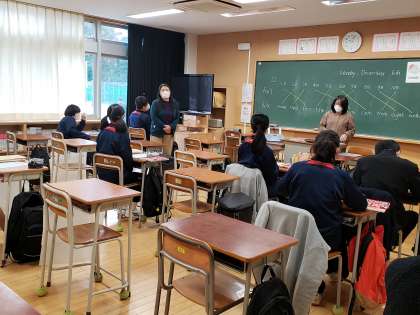 3年生では季節について。秋は「autumn」だけでなく「fall」という言い方もあります。生徒からは「穴」という意味はあるのですか?と質問がありました。先生が黒板に「hole」を書いて、「穴」は別の表現だと説明しました。質問によって学びが更に深まりましたね。