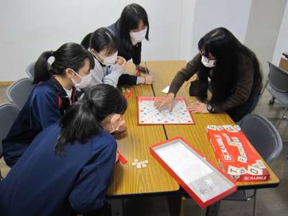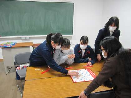 外国のボードゲームを楽しむことを通して、ALTと英語でコミュニケーションをしています。ゲームのルール説明もすべて英語です。