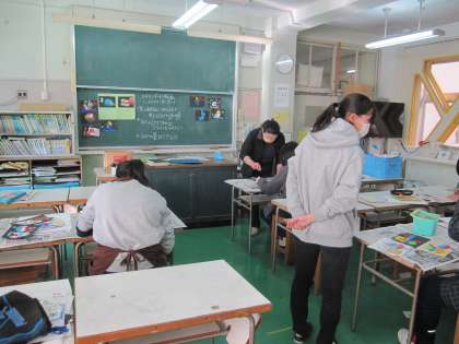 I組はクラスごとに理科、美術、音楽の授業を行っています。