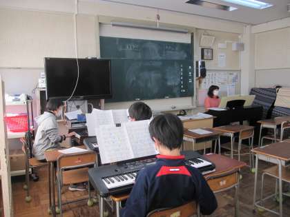 音楽 合奏「空も飛べるはず」の練習が続いています。とても長い曲ですが何度もチャレンジしています。