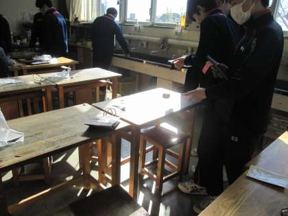 2年生 美術 錫と向き合う