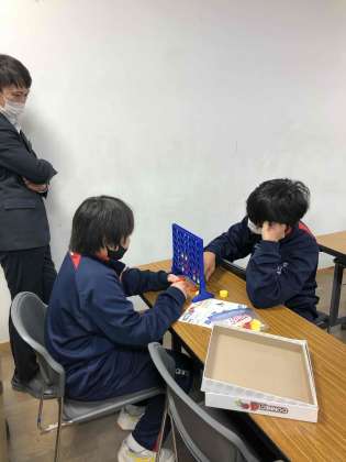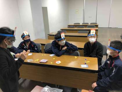 ALTのクリスティーナ先生が新たに持ってきてくれたゲームで、自分が何かを尋ねるWho am I ? ゲームなどで盛り上がっていました。英語の授業でも似たような活動をしますが、授業中よりもリラックスして、楽しい雰囲気に包まれていたように感じました。3学期も続きますので、ぜひまた来てくださいね。