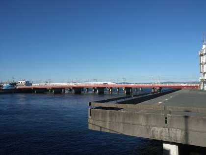 修学旅行に行く三年生は浜名湖を新幹線で通過する時、左側窓から確認できるはずです。(写真は京都方面に向かう東海道新幹線)