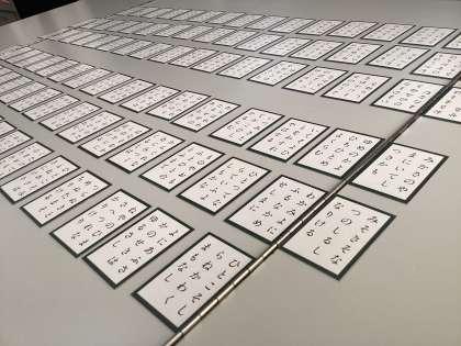 静寂の包まれる中、詠まれる詩に対して感覚を研ぎ澄まして聴きながら、一枚でも多く札を取ろうと集中して練習試合に取り組んでいます。