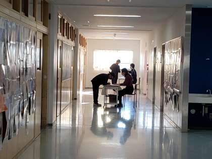 6校時の学活、3年生は進路関係の書類を一人ひとり確認しています。不備のないよう、募集要項を再度読み込んで、書類を一枚ずつ準備していきます。まずは必要書類をしっかりと把握することが、進路へ向けての第一歩ですね。こういった場面も学校公開の際にはご覧いただければ、授業だけではないこの時期の中学校の雰囲気がイメージできるかもしれません。