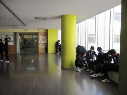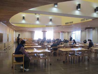 ランチルームでは3年生の受験に関する指導を行っていました。この時期3年生はそれぞれの受験形態に応じて、関係する生徒への事前指導を行っています。