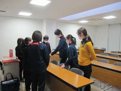 2年生のイングリッシュタイム。2年英語教員も生徒から「一緒にやろう」と誘われて楽しんでいました。