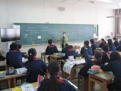 発表に向けてグループで練習しています。どのグループもタブレットを上手に活用しています。