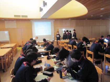 として各自が調べた内容をプレゼンテーションソフトを活用して発表しています。3年間学習してきたことを活用しながら生徒の視点で考えた提案は将来実現するかもしれませんね。(副校長)