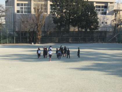 校庭でTボールをしていたI組の生徒たちも速やかに校庭の中央に集まりました。
