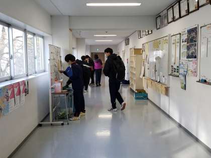 放課後、職員室の前で部活動ボードを確認する1・2年生。「早く部活やりたいなぁ」という声も聞こえてきました。逸る気持ちを抑えて、まずは学年末考査に集中ですね。3年生の頑張ってきた姿は、きっと後輩たちにも大きなメッセージとなっているはずです。