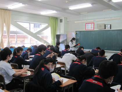 教員は先ず健康観察のためロイロノートを開き記入漏れはその場で入力しています。日々の感染症対策を地道に行うことが最優先となります。