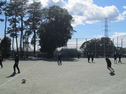 ポカポカ陽気の校庭ではサッカーを楽しんでいます。ずいぶん年季の入ったボールもありました。生徒会ではベルマークを集計してボールをもらおうという計画もありますのでもうしばらくお待ちくださいね。