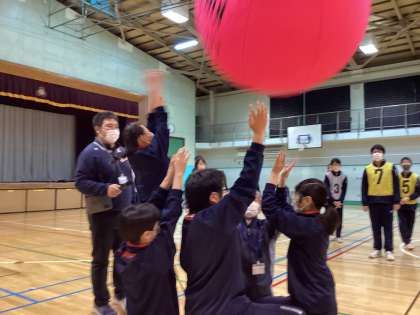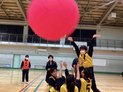 キンボールのルールを確認し、これから4つのグループに分かれて試合が始まります。