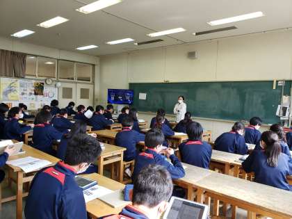 今日は音楽(2年生)と美術(1年生)の授業で学年末考査が返されました。普段は活動の様子を中心に音楽や美術の授業を紹介していますが、今日はテストを返された時の様子をご紹介します。