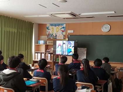 社会科ではビデオを鑑賞しています。内容は「税」に関する学習です。「税」の役割や種類などアニメを通じてわかりやすく学べる内容となっています。成人年齢が引き下げられると、社会人として「税」にも関わっていくことになります。その仕組みを理解しておくことは大切ですね。