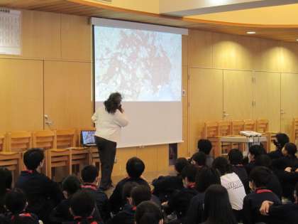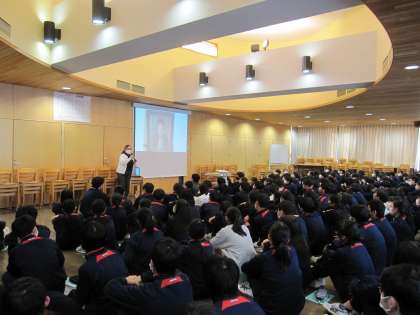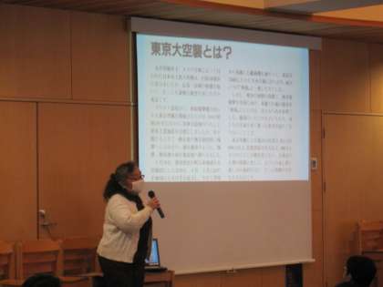 2年生が東京大空襲で親族を亡くした教員の話に耳を傾けました。2年生が16日に訪れる予定の東京都慰霊堂は関東大震災と東京大空襲で亡くなった方のご遺骨が安置されており、震災の状況や戦時中の様子も展示されています。
