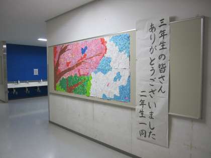 2年生から3年生へ感謝を込めたメッセージが張り出されました。