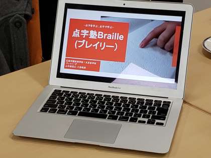 現在、盲学校に通っている砧中の卒業生。視覚障害者に対する社会的な啓発を目的に、同じ学び舎の卒業生とともに起業することになったそうです。事業コンセプトは点字を学ぶ塾を設立して、点字の普及に努めると同時に、視覚障害への理解を促進していくこと。本日はそのプレゼンのため、砧中を訪問してくれました。既にいくつかのビジネスコンテストで入賞を果たし、新たなビジネスモデルとして各界からも高い評価を得ています。来年度は起業に至った経緯や、視覚障害理解促進を目指して、砧中生とのコラボを行いたいとの企画提案がありました。