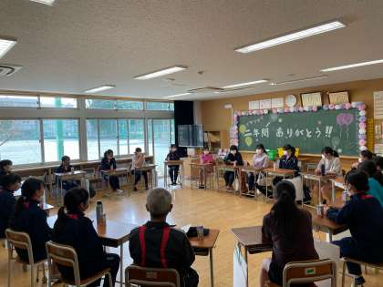 後半は教室へ移動して、思い出をふりかえりつつ、1・2年生から3年生に感謝の気持ちを伝えました。穏やかでほんわかな雰囲気の3年生でしたが、コツコツ努力し、上達しましたね。後輩への声かけも優しく、それぞれがいろいろなところからチームを支え、引っ張っている姿はとても頼もしくかっこよかったです。