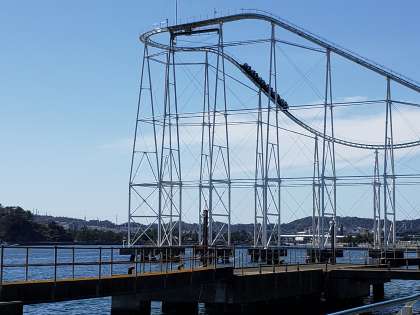 海へと突き出たジェットコースター。遠くまで悲鳴が聞こえてきます。これは人気があるのはわかりますね。ちなみに教員で年齢制限に引っ掛かったのは果たして誰でしょう?