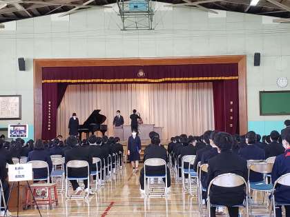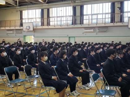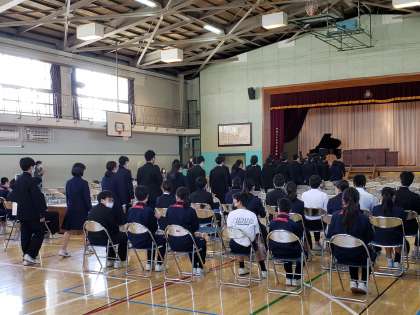 本日4校時に卒業式予行を実施しました。本番さながらに一通りの流れを確認いたしました。3年生は昨日の校外学習気分を切り替えて、厳かな雰囲気の中での予行となりました。練習時間が決して多いとは言えませんが、一人ひとりの生徒が自らの役割を自覚して取り組んだことで、レベルの高い予行となりました。