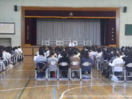 どのように志望校を決定するか、本人と保護者とでどう話し合って決めていくかなど、進路全般についての話から、砧中学校の推薦基準や来春の都立入試、私立入試のについて説明がありました。