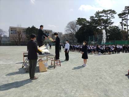 3年生の中から、体育優良生徒、産業教育奨励賞を受賞された生徒が表彰されました。