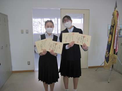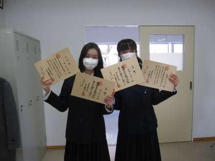 日本文化部の3年生が華道の免許状を取得しました。