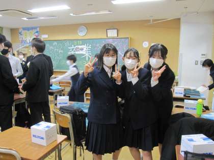 最後の黒板メッセージに思いをのせる生徒もいます。(副校長)