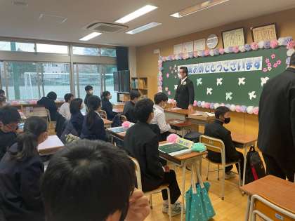 卒業式後、I組も学級に戻り最後の学活を行いました。