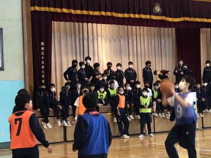 女子はドッジボール、男子はバスケットボールが始まりました。応援にも力が入ります。クラスの団結が感じられる声援です。体育委員も段取りよく進めています。各クラスそれぞれ声を掛け合って頑張っています!
