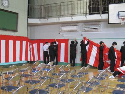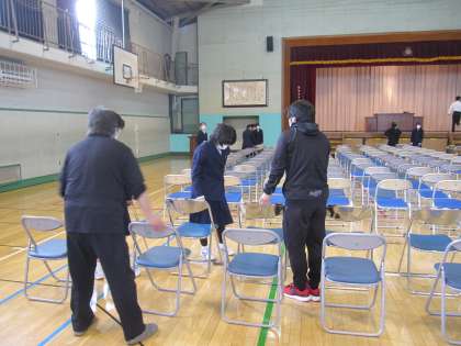 卒業式準備の経験を生かし手際よく進めています。