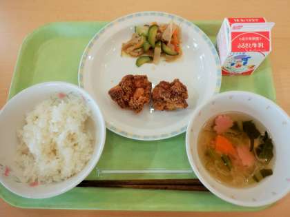 ・ご飯 ・鶏肉の唐揚げ ・こんにゃくサラダ ・すまし汁