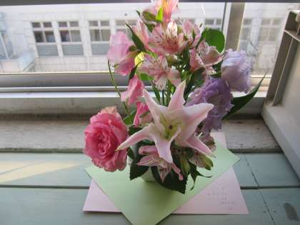 日本文化部の生徒たちが入学式の壇上の花をリメイクして1年生の教室に届けました。優しい色合いのお花で1年生の皆さんの心が癒されてくれたら嬉しいです。