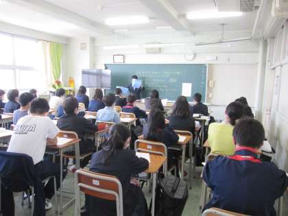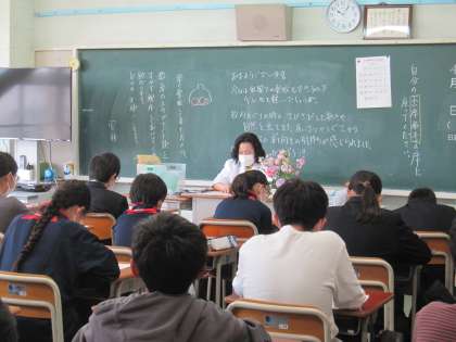 昨日の校内巡りでもとても良いマナーだったと褒められていた1年生。今日は砧中学校での生活の仕方を冊子を使いながら説明しています。話を聞く姿勢がとても良いですね。(副校長)