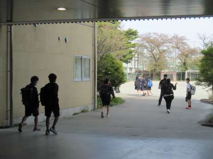 写真の右奥でALTと生徒が英語で会話しています。自然に英語が出てくるのはすごいですね。ALTはフレンドリーな方ですのでまた明日も話しかけてみてくださいね。(副校長)