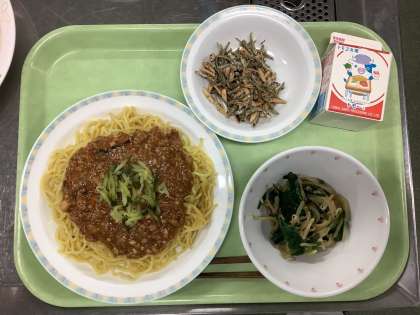 今日は麺と肉みそダレがとっても美味しいジャージャー麺でした!肉は豚ひき、鶏ももひき肉、そして豚レバーのミンチを使っています。レバーも入ることで鉄分アップです。さらに肉よりも多く玉ねぎなどの野菜や大豆のみじん切りも入っています。この料理を食べるだけでいろんな栄養がたくさんとれます!
