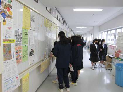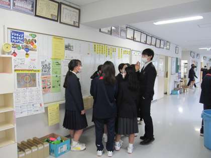 部活動ホワイトボードの前は仮入部したい生徒と仮入部の部員数を知りたい生徒や教員でにぎわっています。